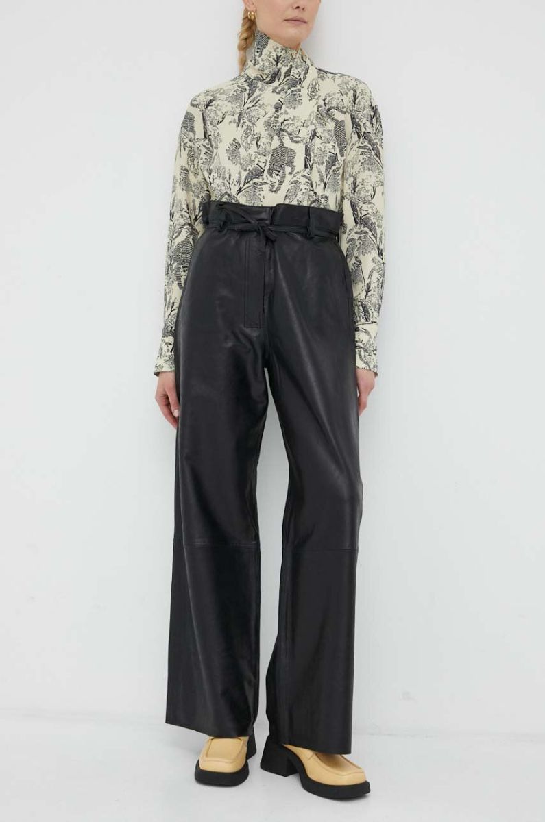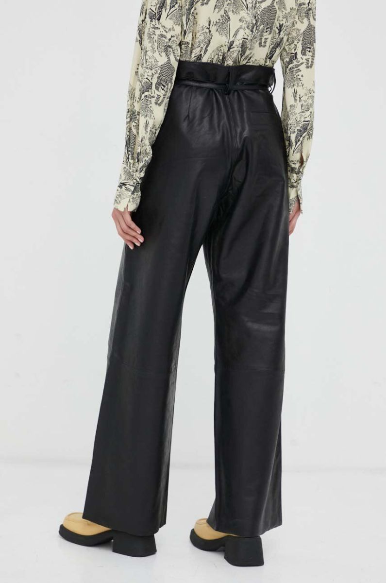 Шкіряні штани Day Birger et Mikkelsen жіночі колір чорний широке висока посадка