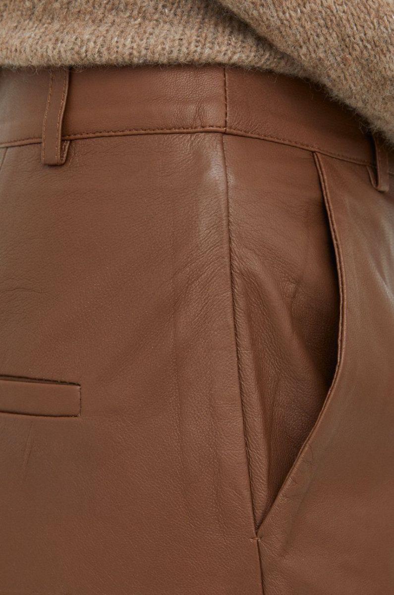 Шкіряні штани Gestuz жіночі колір коричневий прямі висока посадка