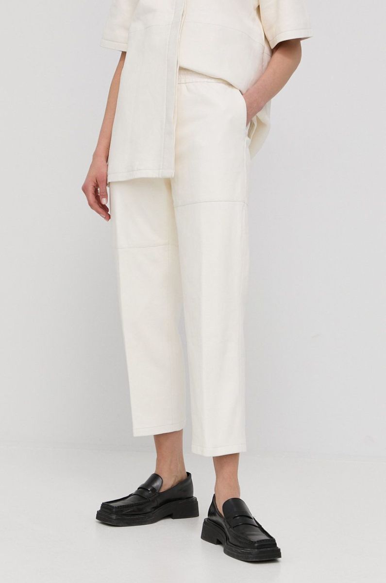 Шкіряні штани Herskind жіночі колір білий пряме висока посадка