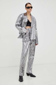 Шкіряні штани Remain жіночі колір чорний пряме висока посадка