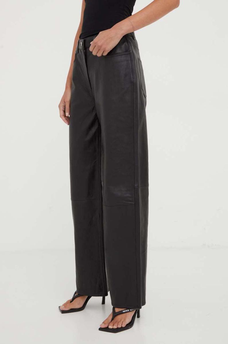 Шкіряні штани Samsoe Samsoe жіночі колір чорний широке висока посадка