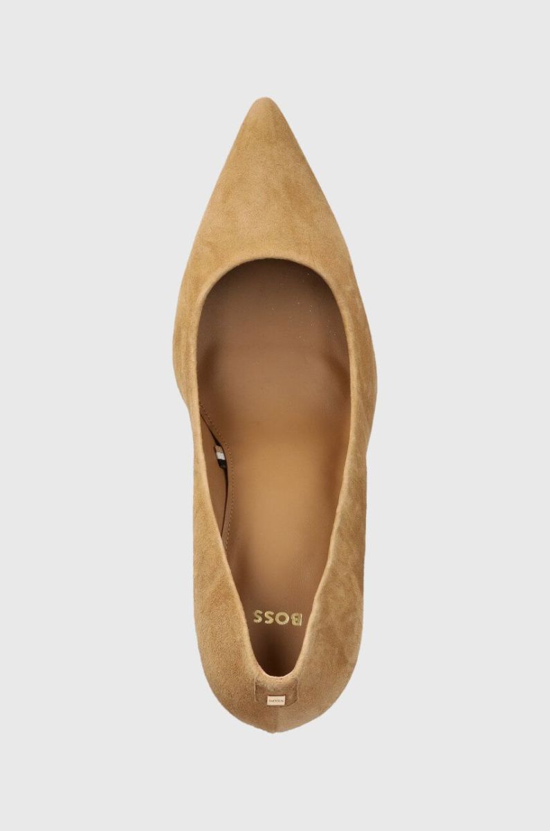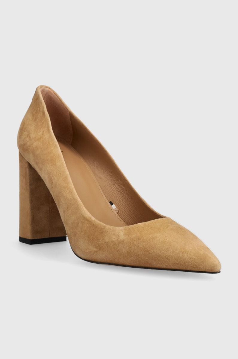 Шкіряні туфлі BOSS Janet Chunky колір бежевий каблук блок 50498828
