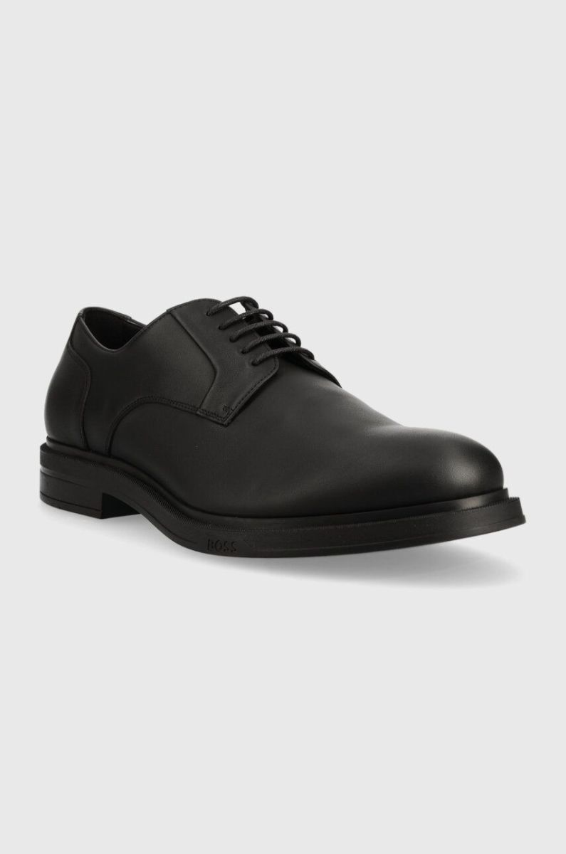 Шкіряні туфлі BOSS Saul чоловічі колір чорний 50492778