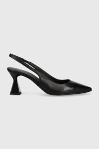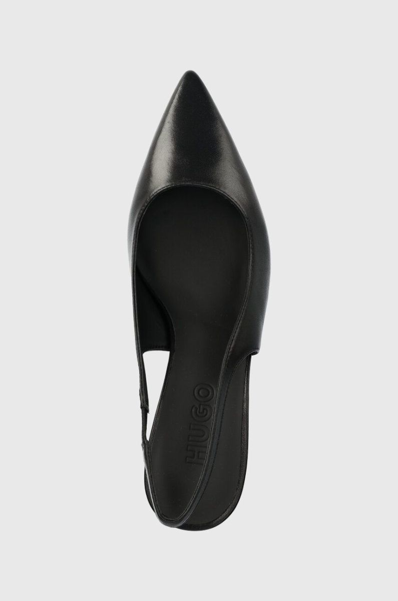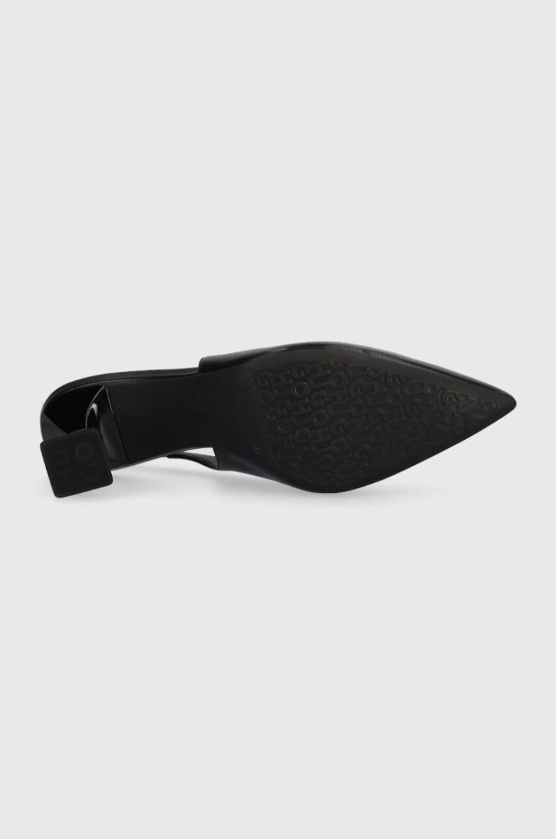Шкіряні туфлі HUGO Rebecca колір чорний каблук блок відкрита п'ята