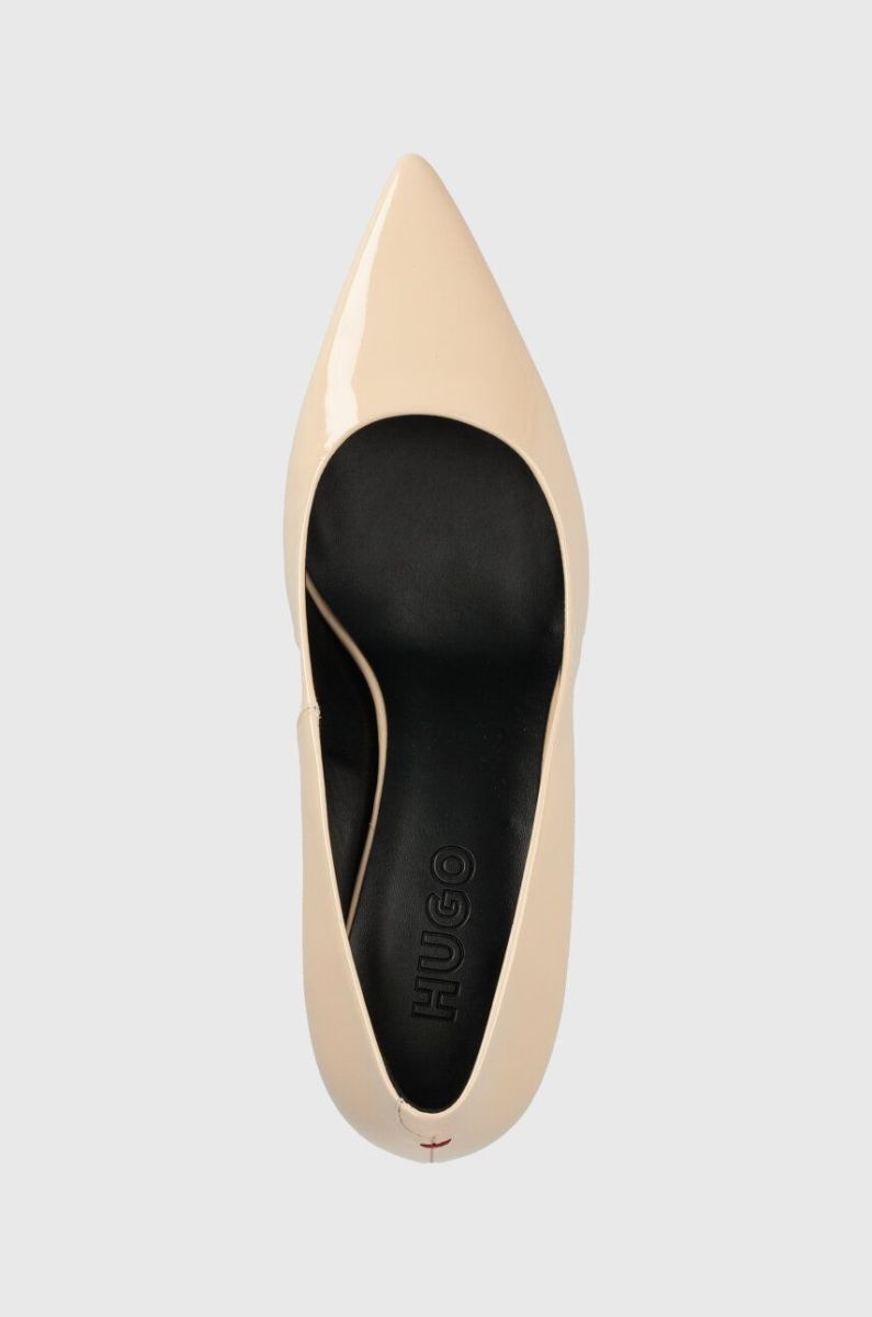 Шкіряні туфлі HUGO Rebecca Pump 70-P колір бежевий 50498084