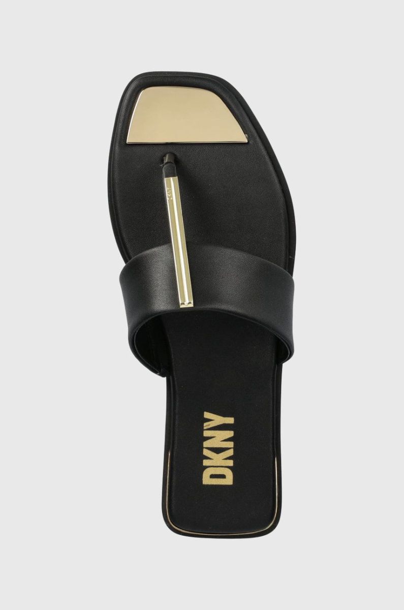 Шкіряні в'єтнамки Dkny DEJA жіночі колір чорний на плоскому ходу K4259021