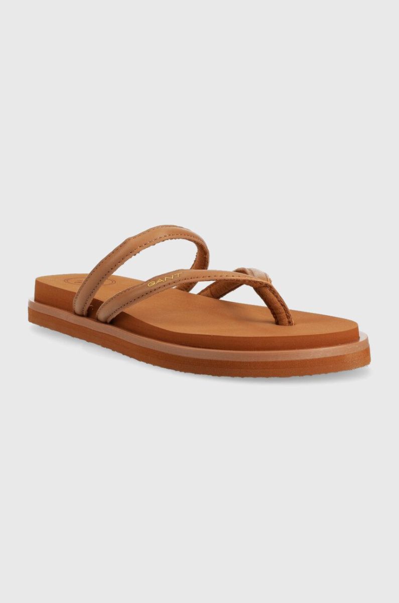 Шкіряні в'єтнамки Gant Lazily жіночі колір коричневий на плоскому ходу 26561812.G45