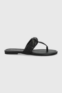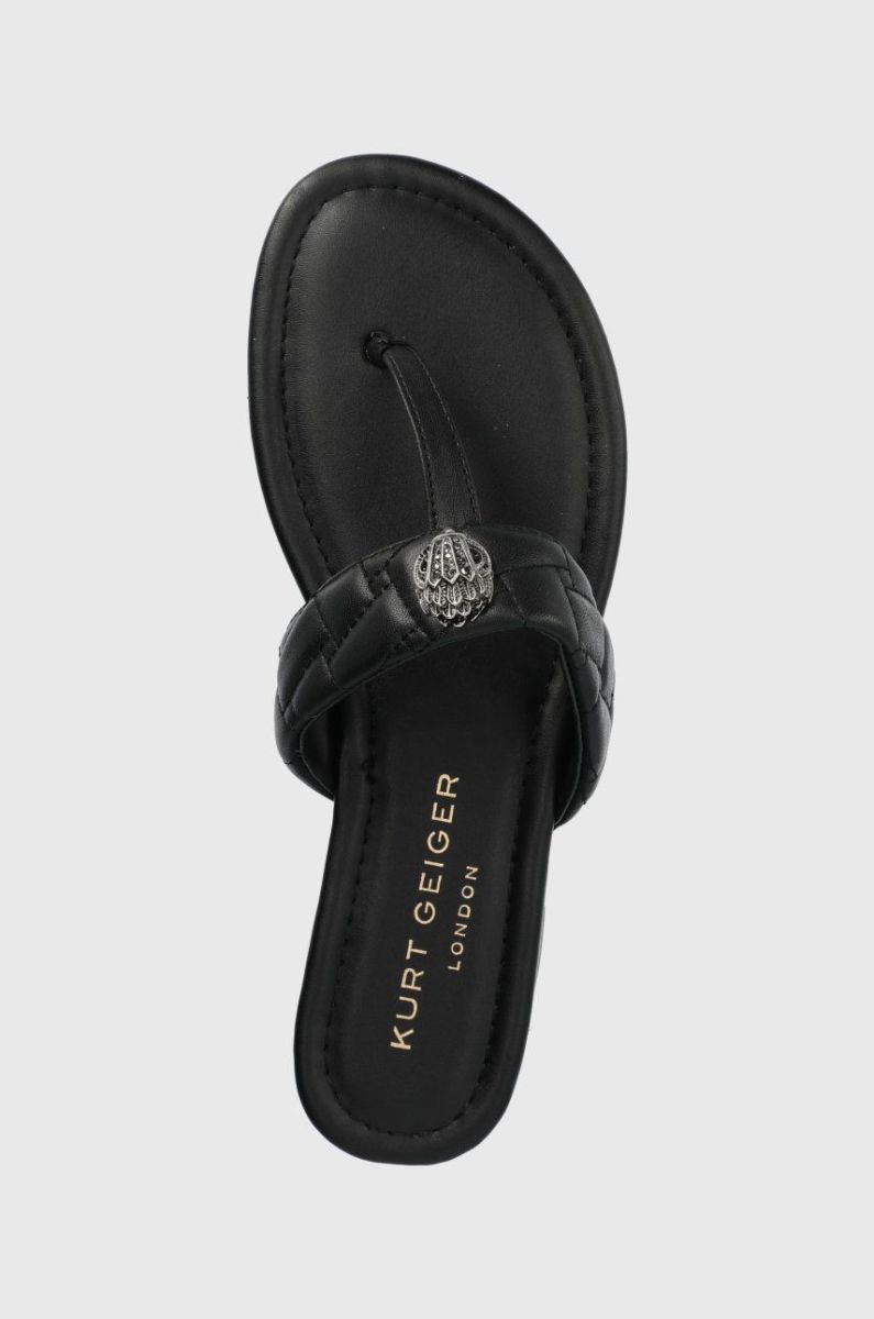 Шкіряні в'єтнамки Kurt Geiger London жіночі колір чорний на плоскому ходу