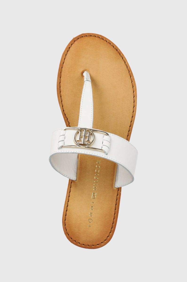 Шкіряні в'єтнамки Tommy Hilfiger жіночі колір білий на плоскому ходу