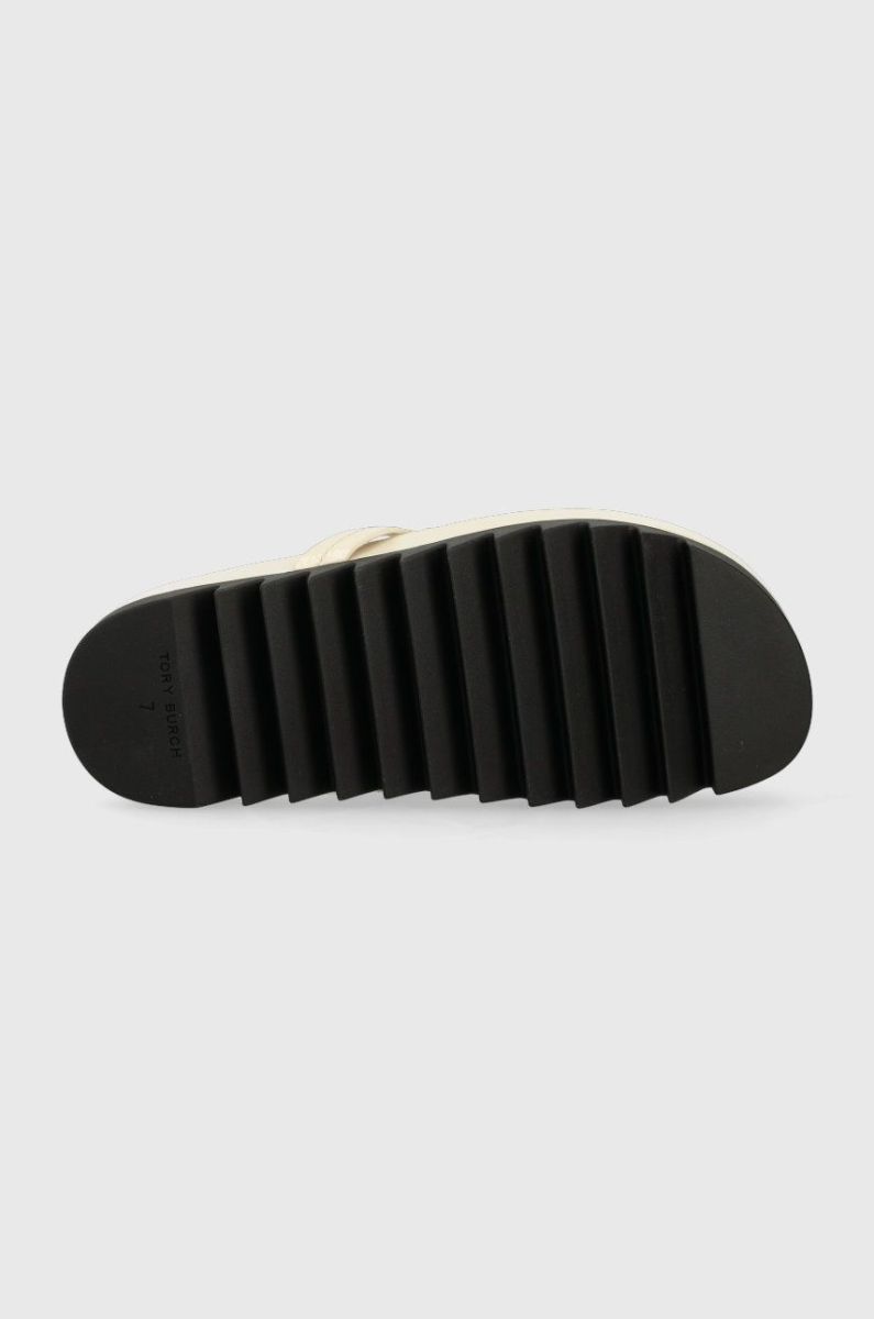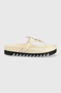 Шкіряні в'єтнамки Tory Burch жіночі колір бежевий на платформі