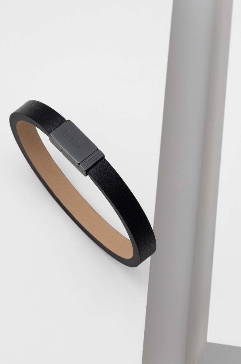 Шкіряний браслет BOSS чоловічий колір чорний (2931208)