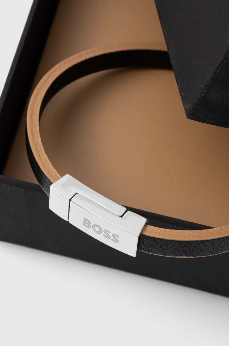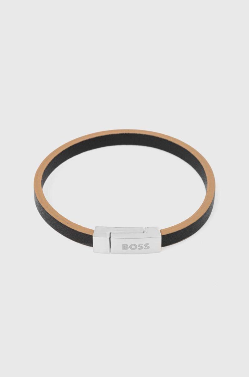 Шкіряний браслет BOSS чоловічий колір чорний (3175012)