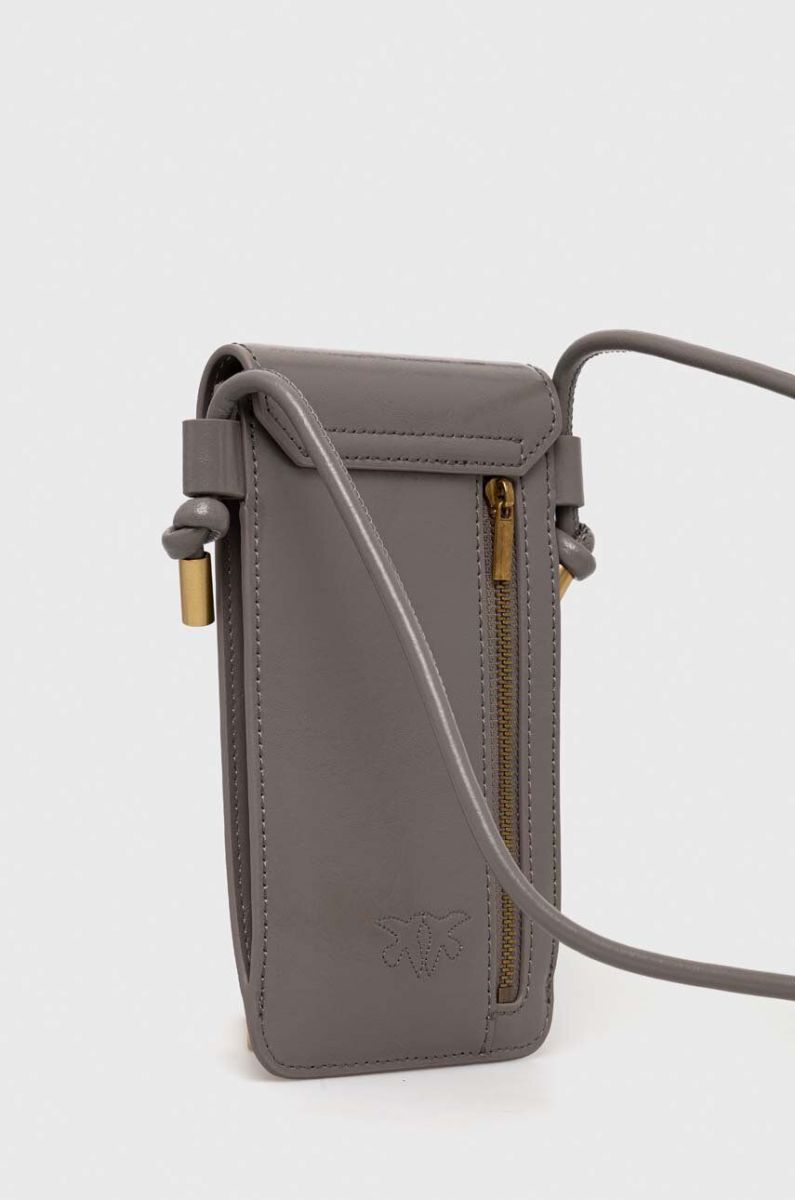 Шкіряний чохол на телефон Pinko колір сірий Один розмір