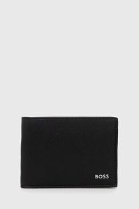 Шкіряний гаманець BOSS чоловічий колір чорний (2898013)