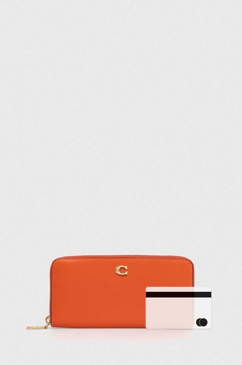 Шкіряний гаманець Coach жіночий колір помаранчевий (3256719) Один розмір