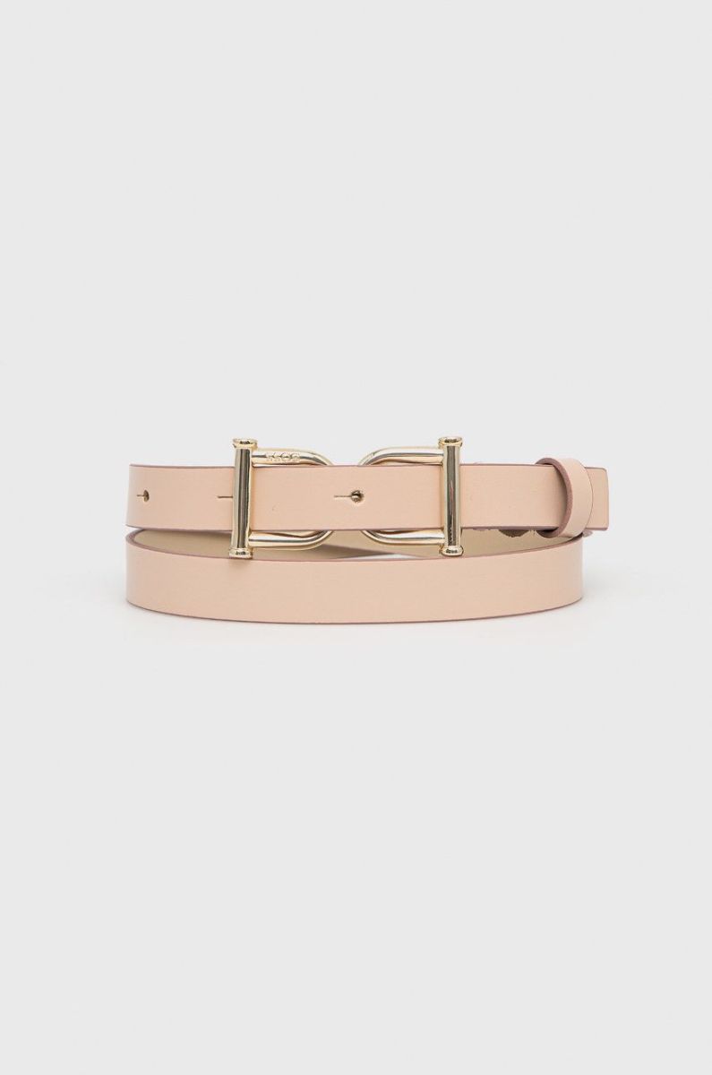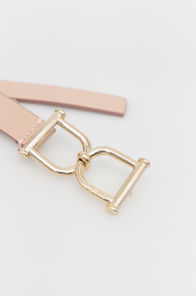 Шкіряний ремінь Boss жіночий колір рожевий