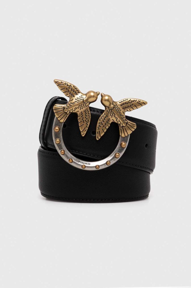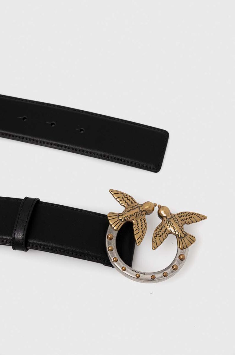 Шкіряний ремінь Pinko жіночий колір чорний (3430374)