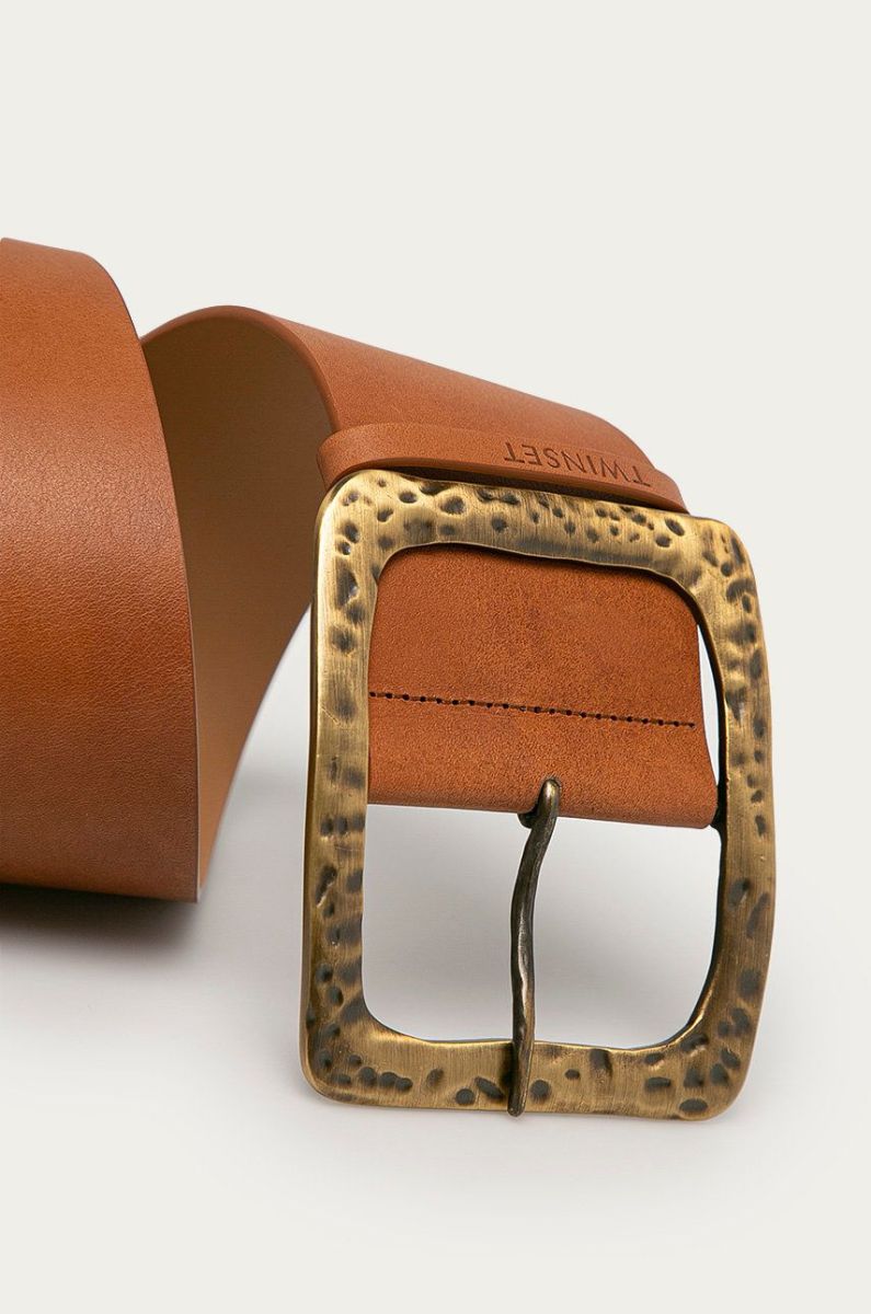 Шкіряний ремінь Twinset жіночий колір коричневий