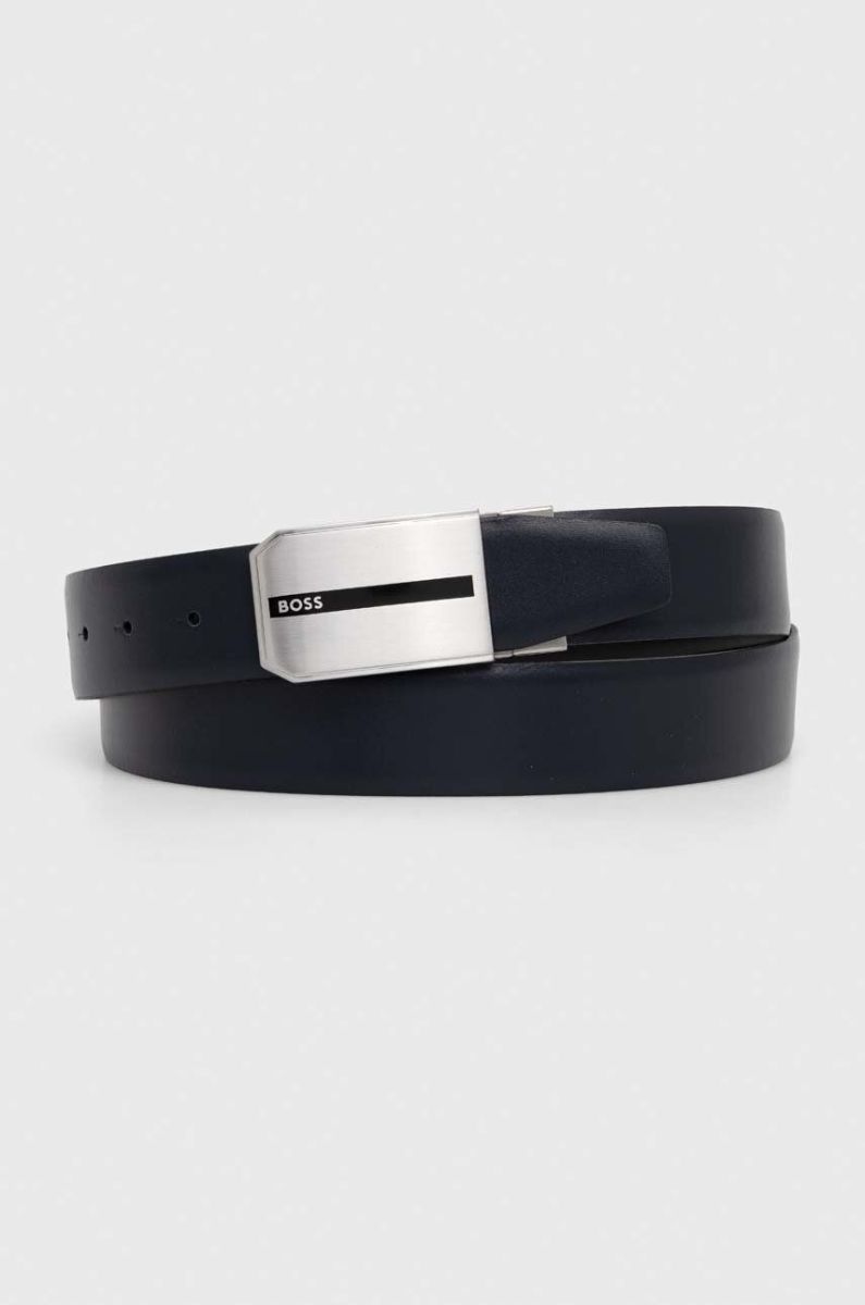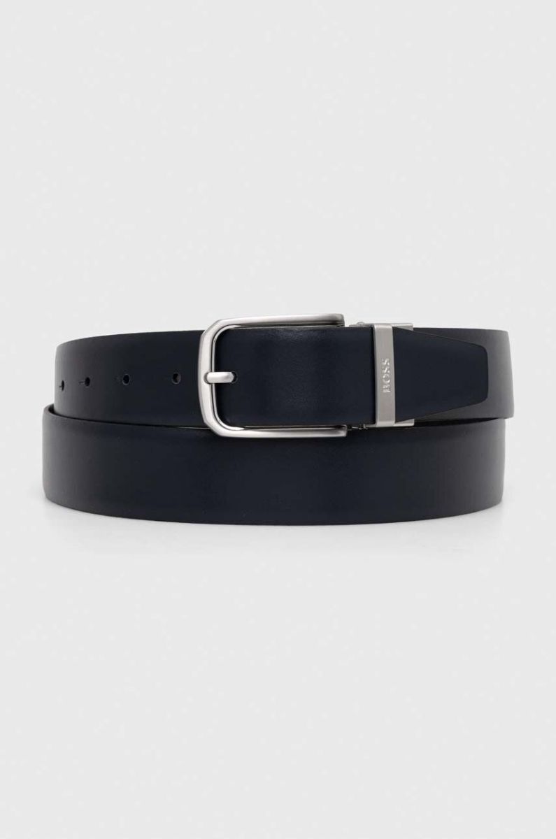 Шкіряний ремінь зі змінними клямрами BOSS колір чорний (3486366)