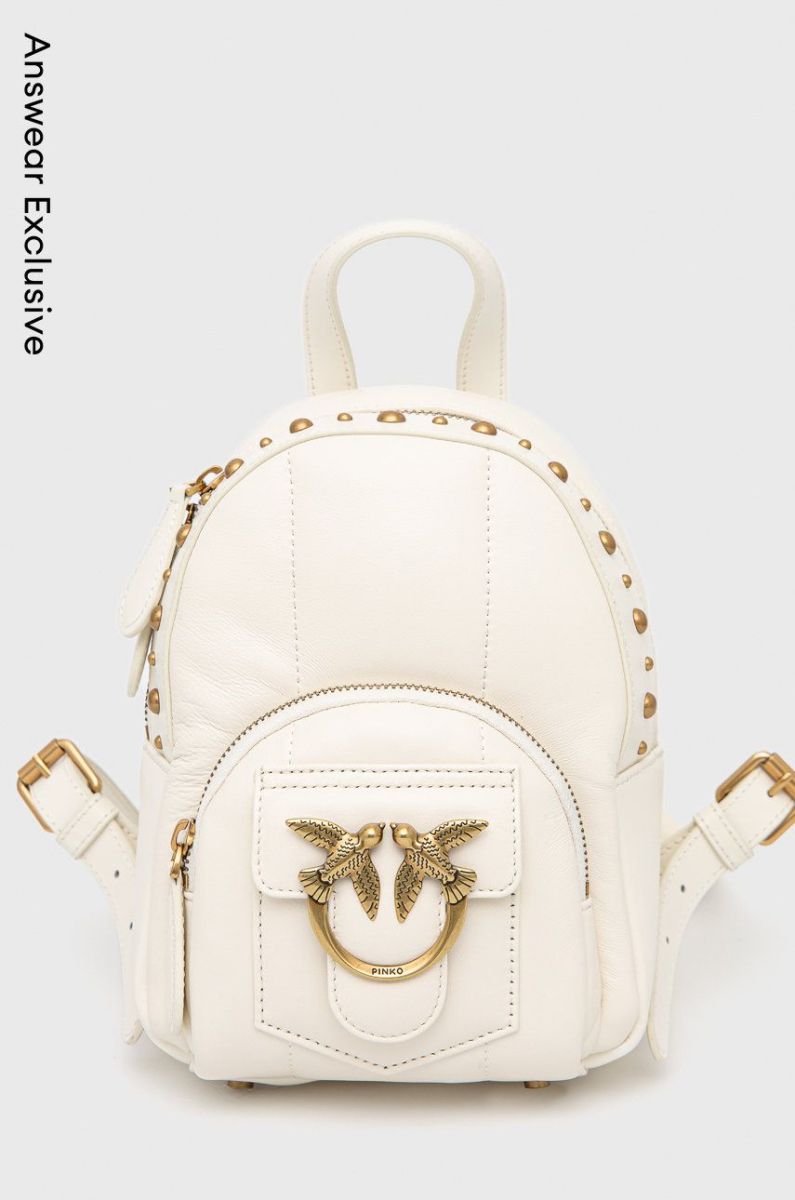 Шкіряний рюкзак Pinko жіночий колір білий малий з аплікацією (2332272) Один розмір