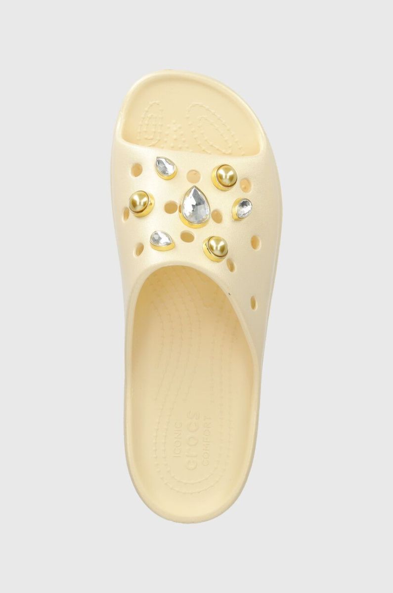 Шльопанці Crocs Classic Platform Crystals Perls Slide жіночі колір бежевий на платформі 208388