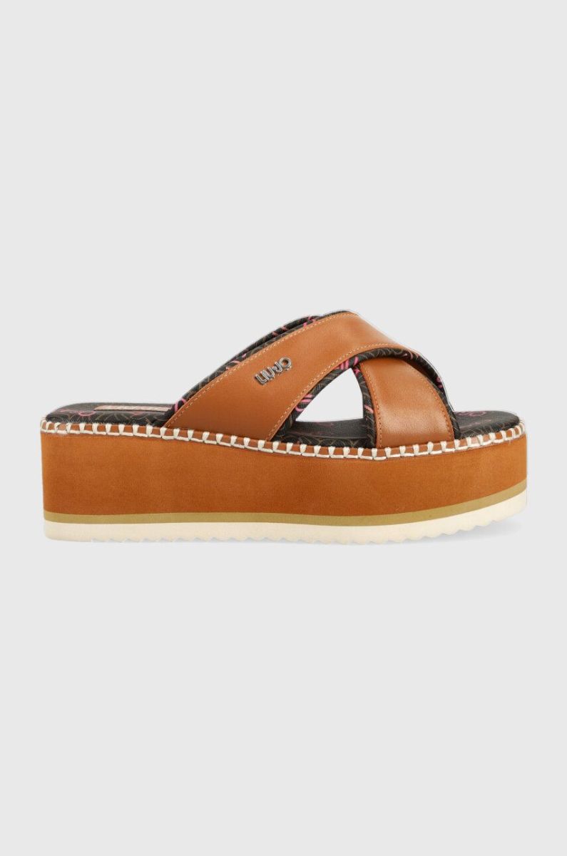 Шльопанці Liu Jo ABA 21 жіночі колір коричневий на платформі SA3103PX298S1892