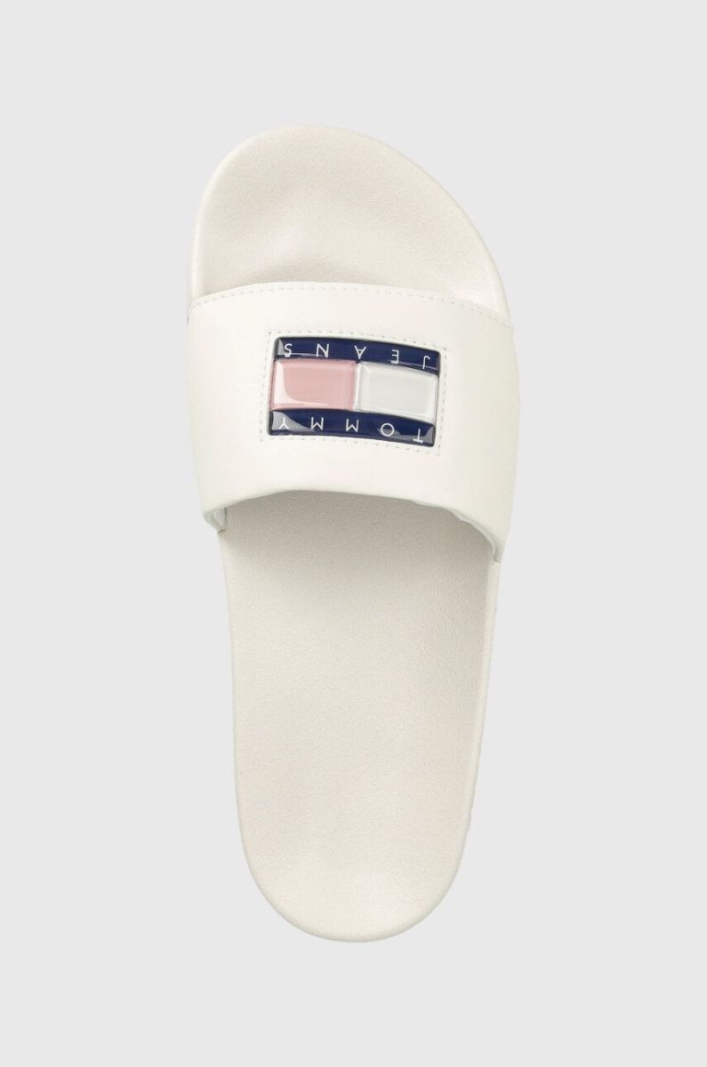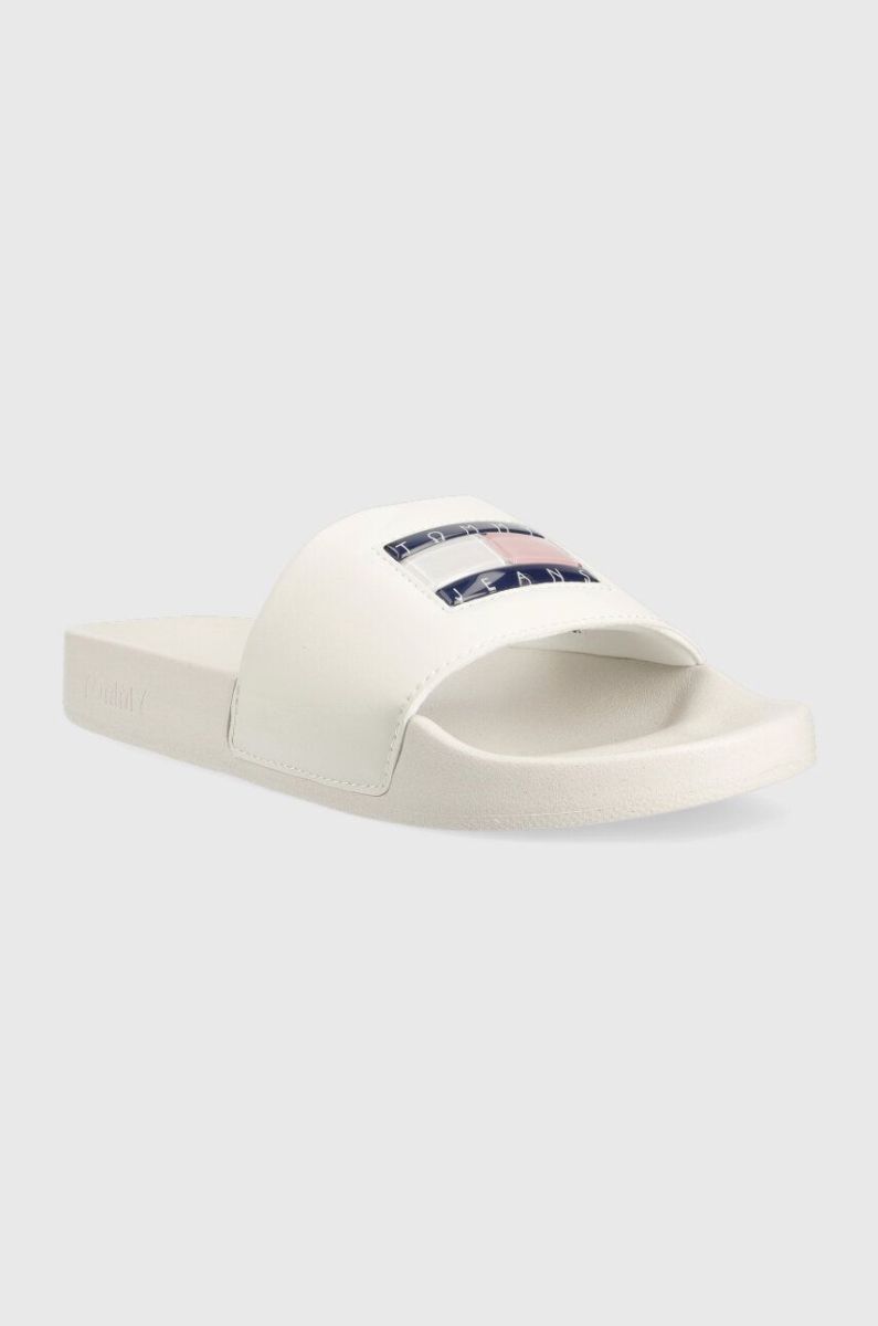 Шльопанці Tommy Jeans FLAG PRINT POOL SLD жіночі колір білий EN0EN02108