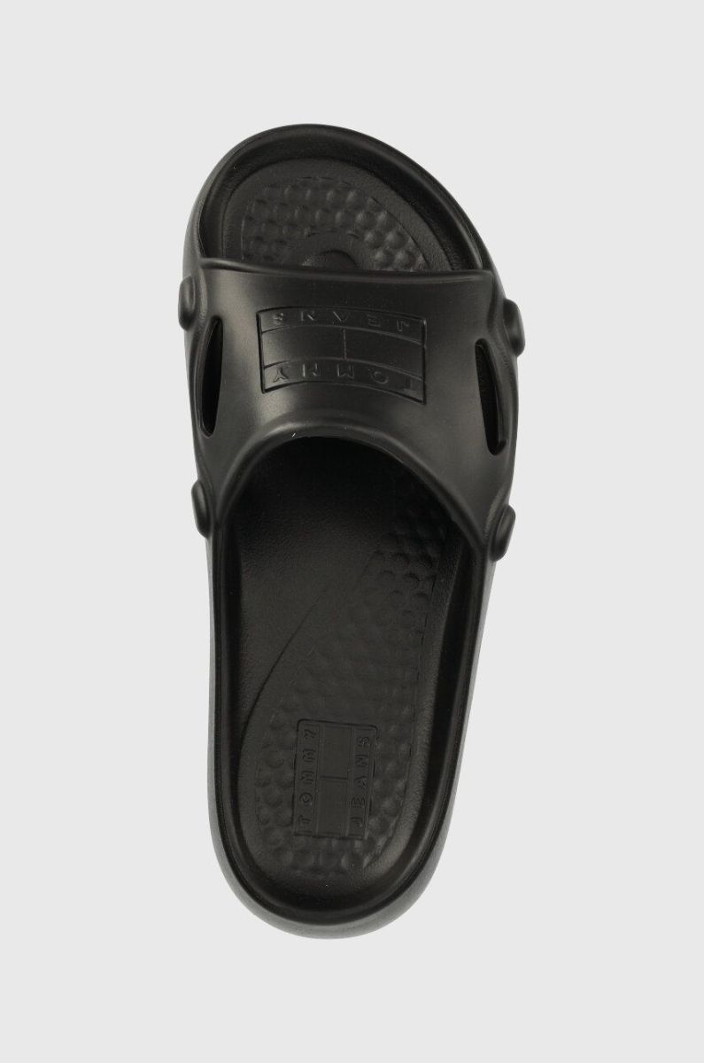 Шльопанці Tommy Jeans FREEDOM FLATF POOL жіночі колір чорний на танкетці EN0EN02145