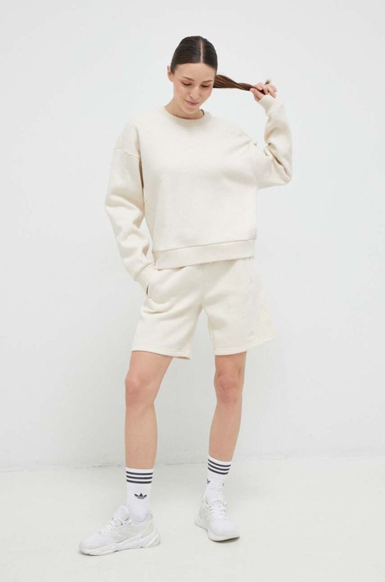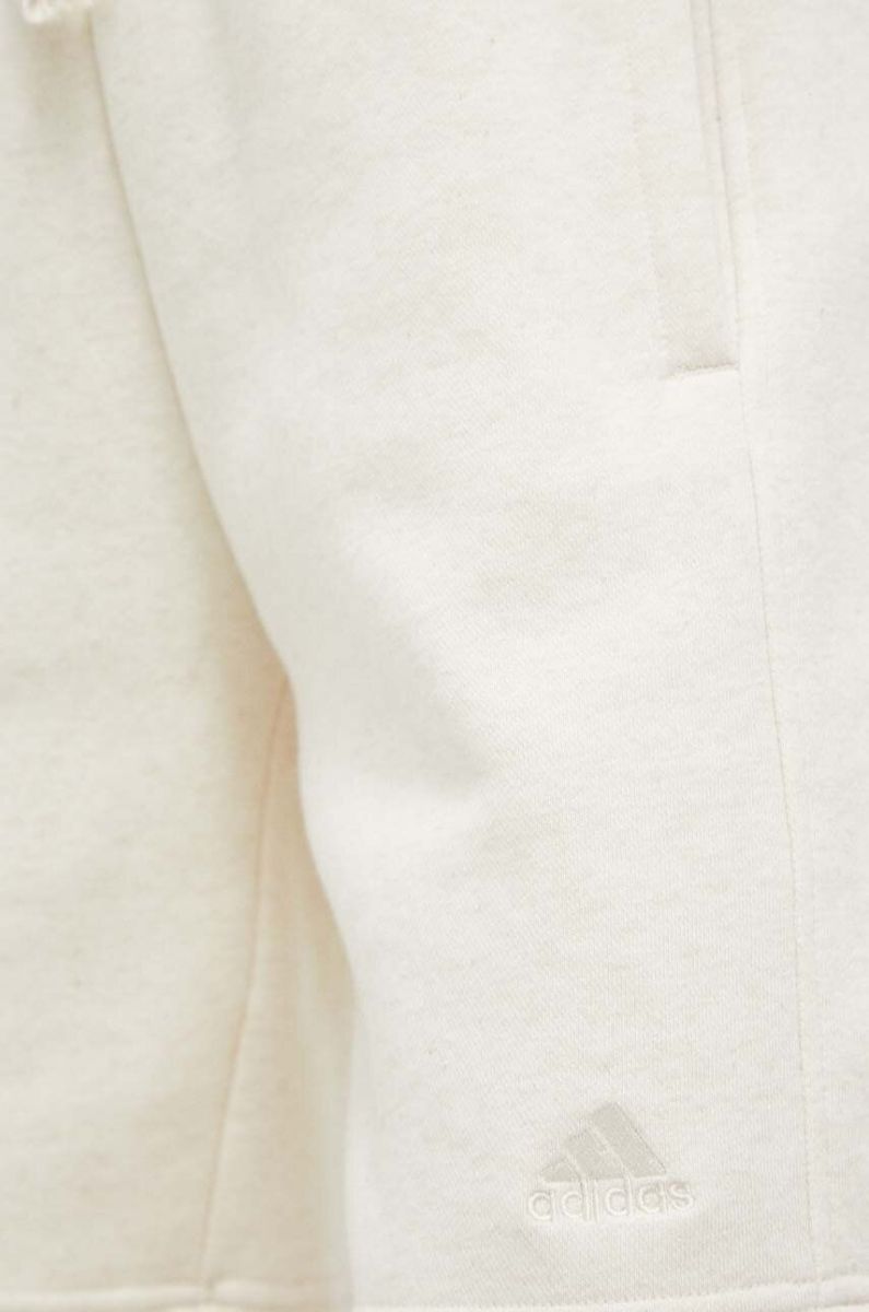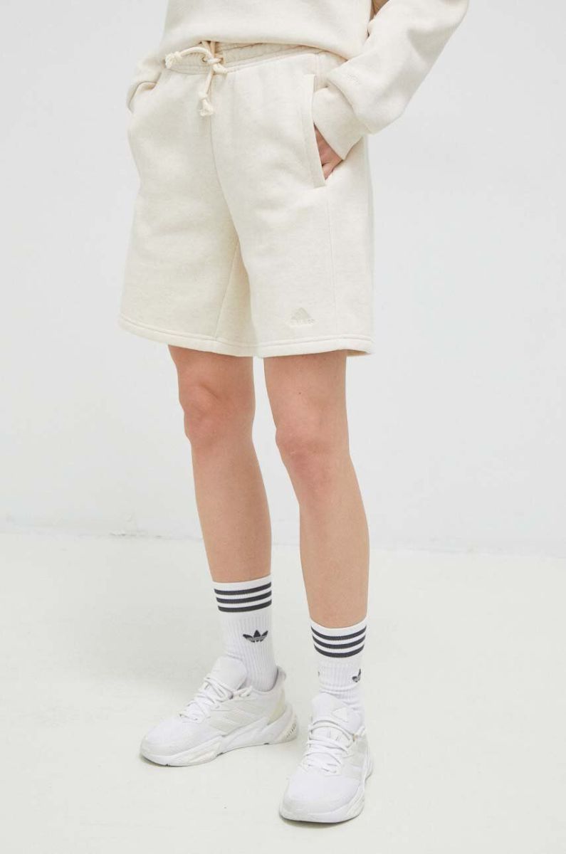 Шорти adidas жіночі колір бежевий меланж висока посадка