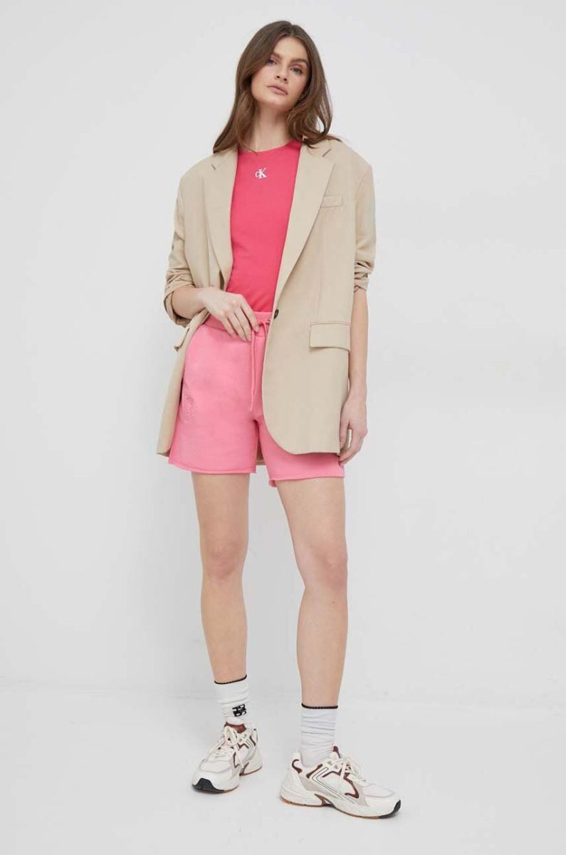 Шорти Blauer жіночі колір рожевий однотонні висока посадка