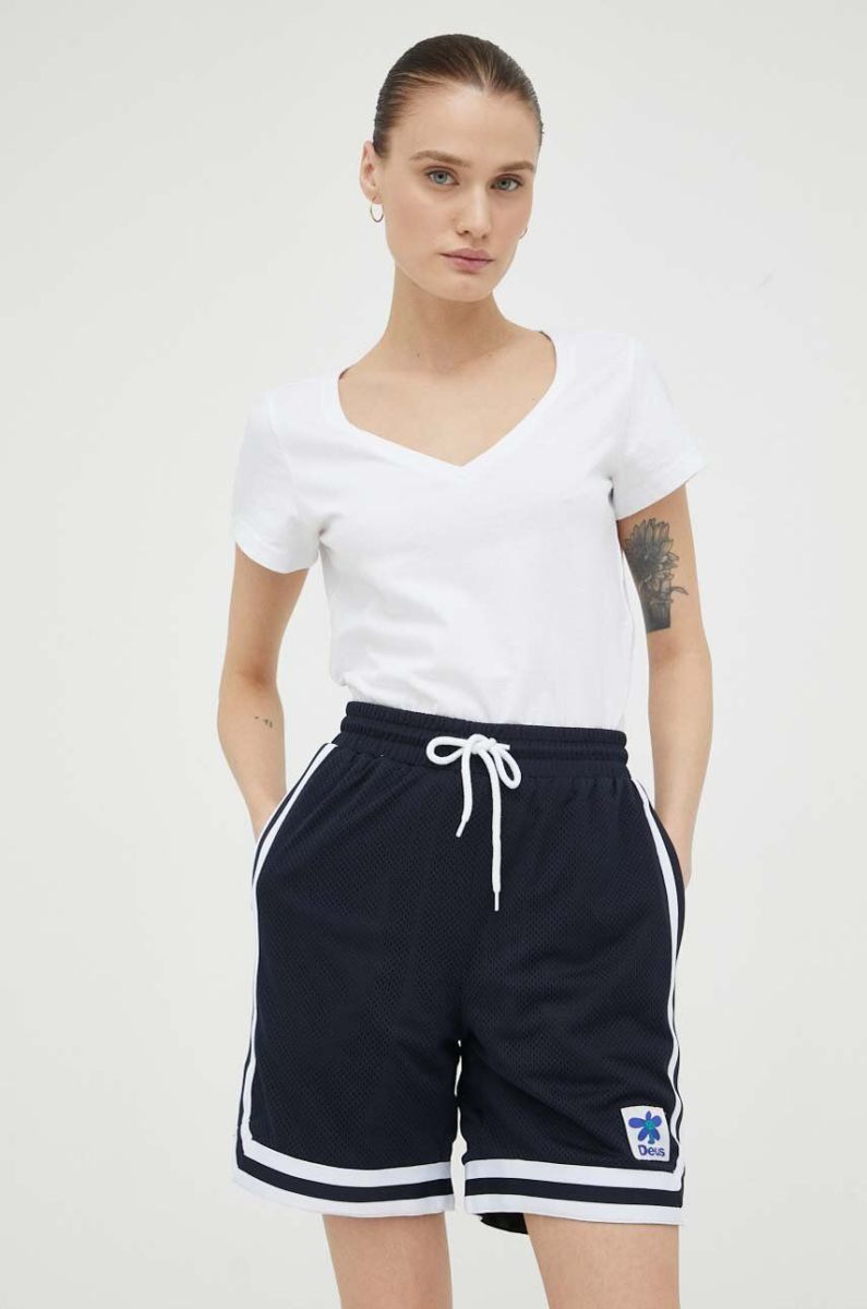 Шорти Deus Ex Machina жіночі колір синій однотонні висока посадка