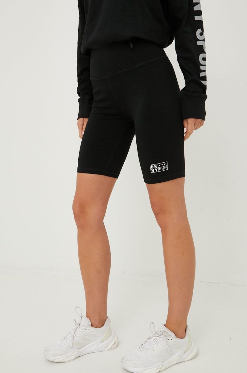 Шорти Dkny жіночі колір чорний з принтом висока посадка (2576384)