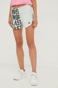 Шорти для бігу adidas Performance Run Fast жіночі колір зелений візерунок висока посадка