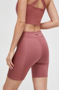 Шорти для йоги Reebok колір рожевий однотонні висока посадка