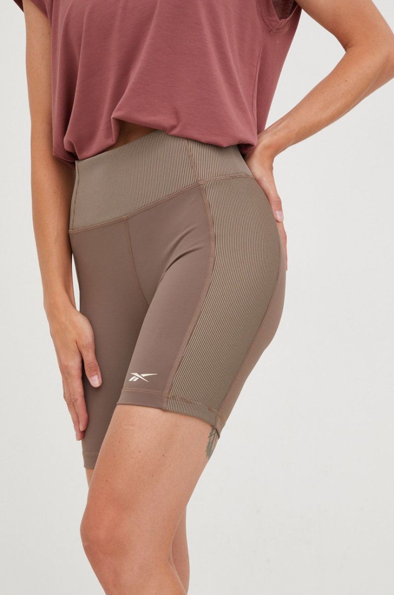 Шорти для йоги Reebok жіночі колір коричневий візерунок висока посадка