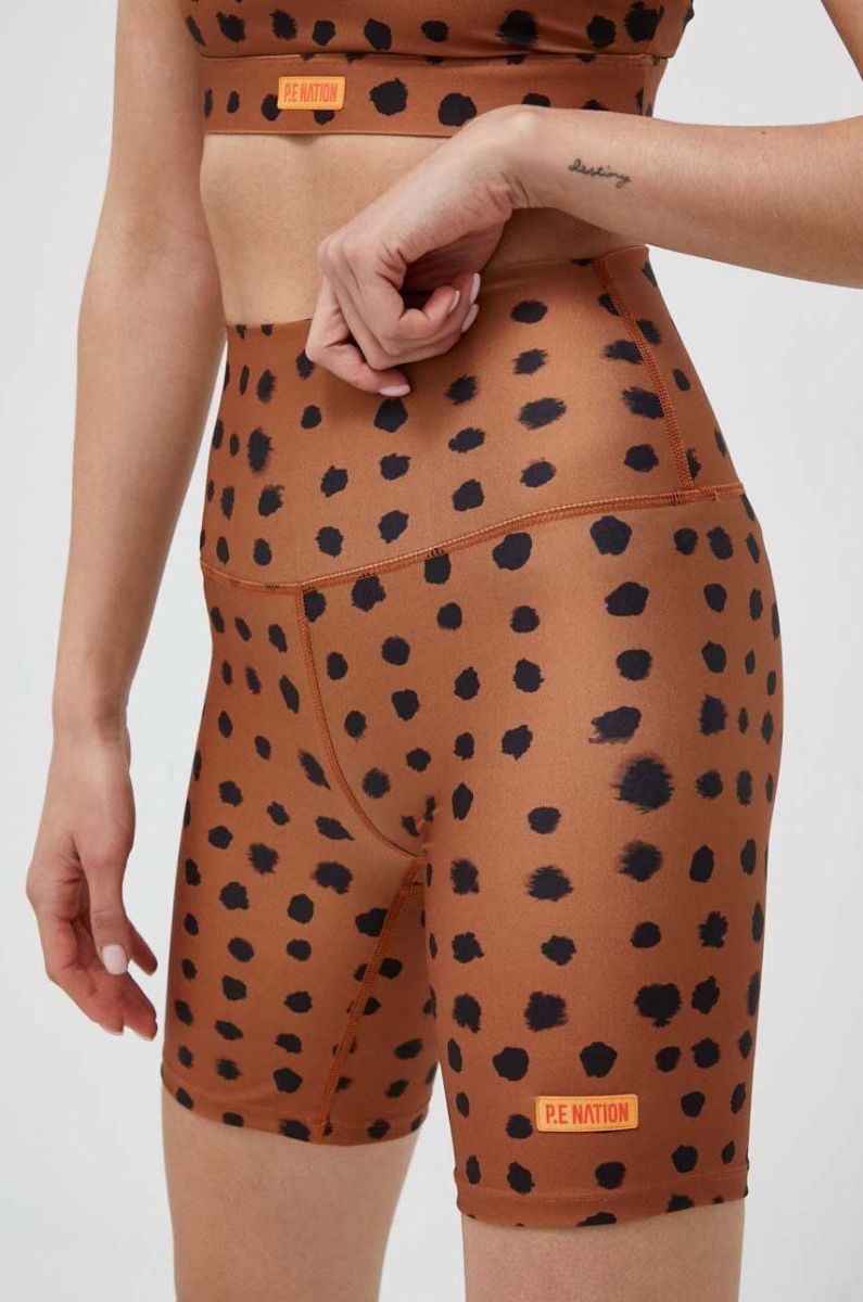 Шорти для тренувань P.E Nation Monterosa колір коричневий візерунок висока посадка