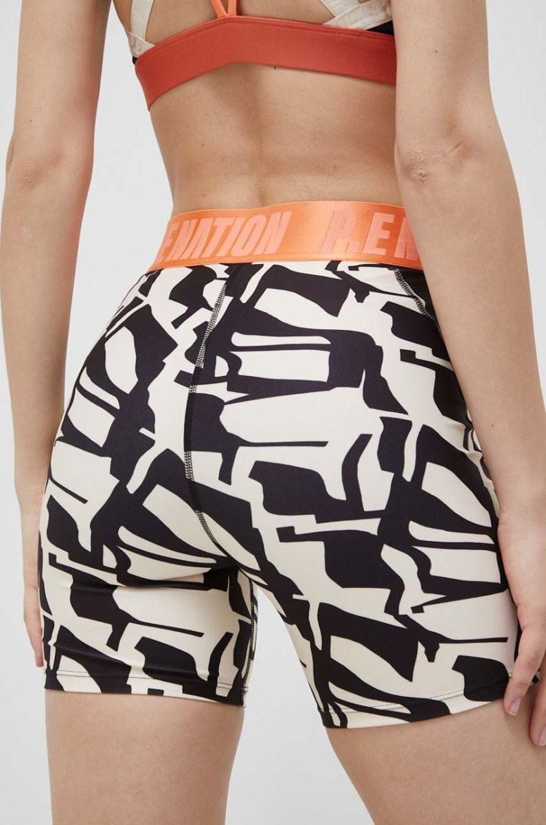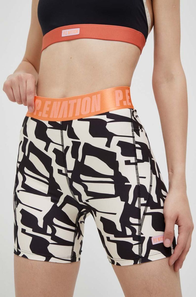 Шорти для тренувань P.E Nation Rockland колір бежевий візерунок висока посадка