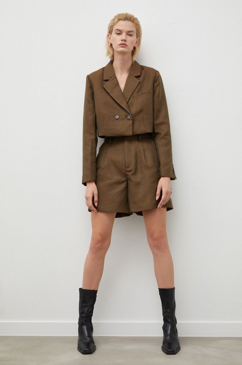 Шорти Gestuz жіночі колір зелений візерунок висока посадка
