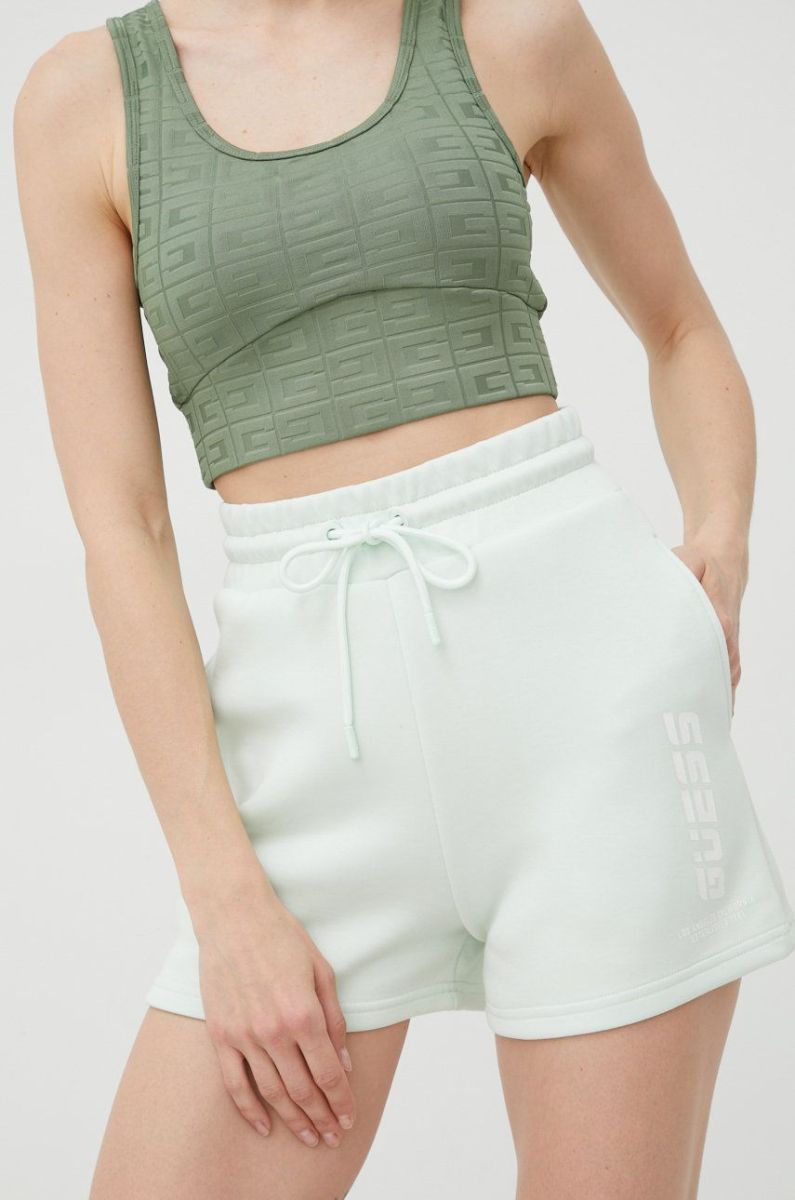 Шорти Guess жіночі колір бірюзовий з принтом висока посадка
