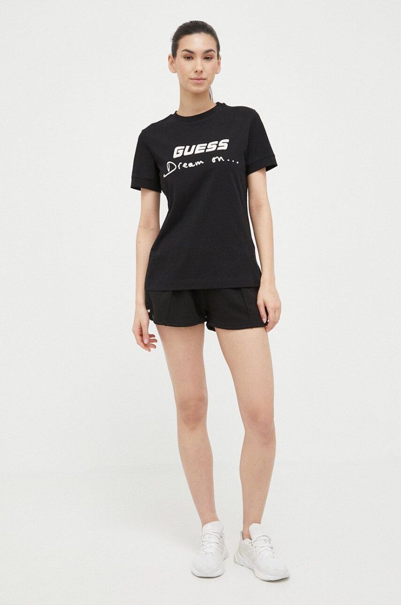 Шорти Guess жіночі колір чорний однотонні висока посадка (3145188)