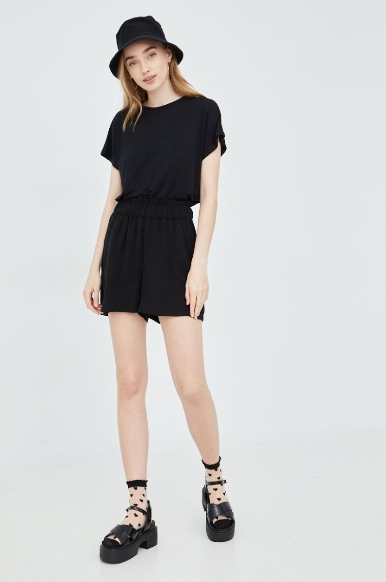 Шорти JDY жіночі колір чорний однотонні висока посадка
