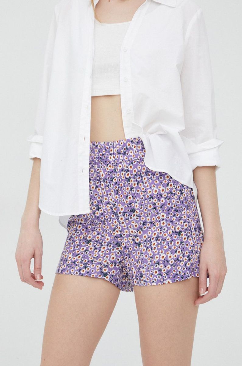 Шорти JDY жіночі колір фіолетовий візерунок висока посадка