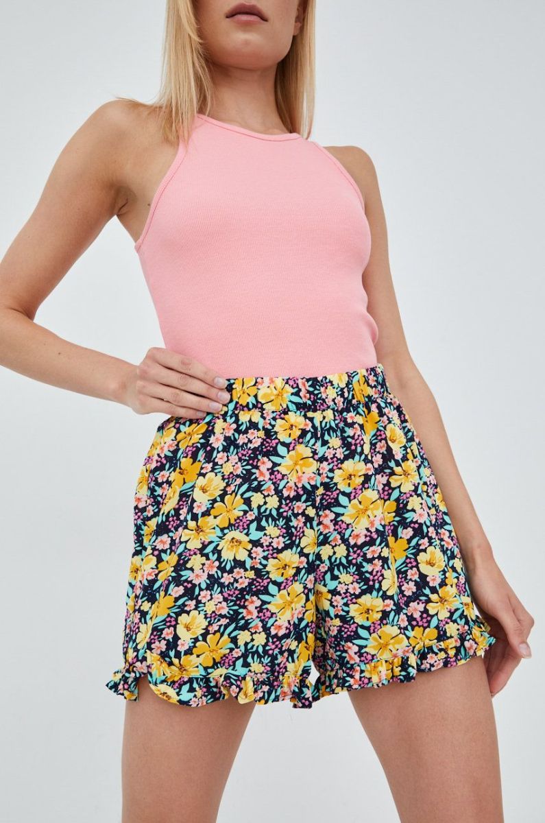 Шорти JDY жіночі колір синій візерунок висока посадка (2437429)
