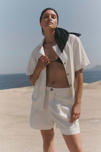 - Дихаюча і тримаюча форму тканина стійка до складок і має характеристики швидко висихаючого матеріалу (ідеально підходить для пляжу).