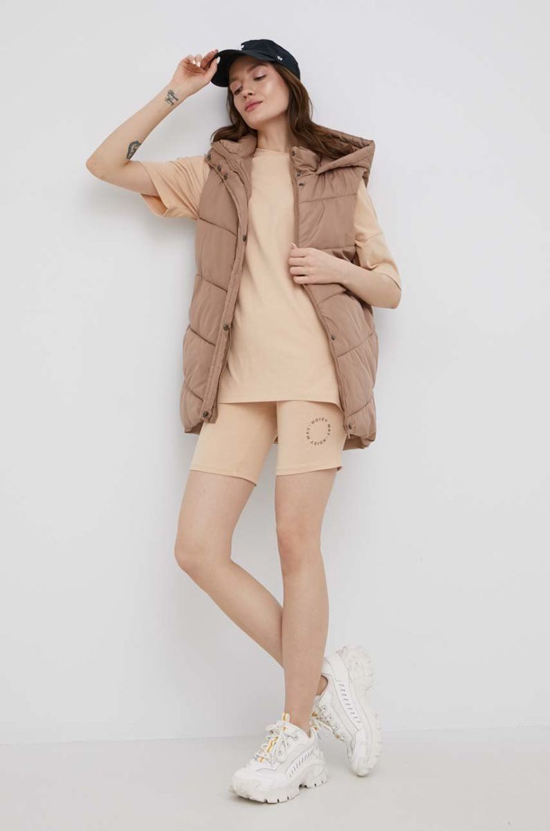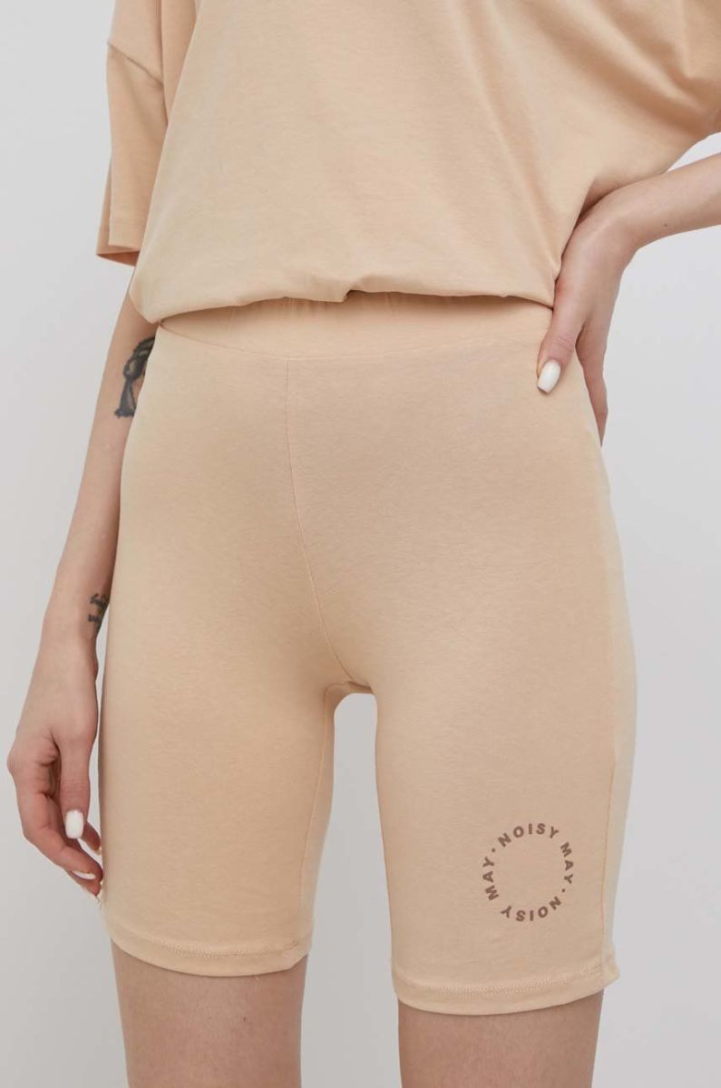 Шорти Noisy May жіночі колір бежевий з принтом висока посадка