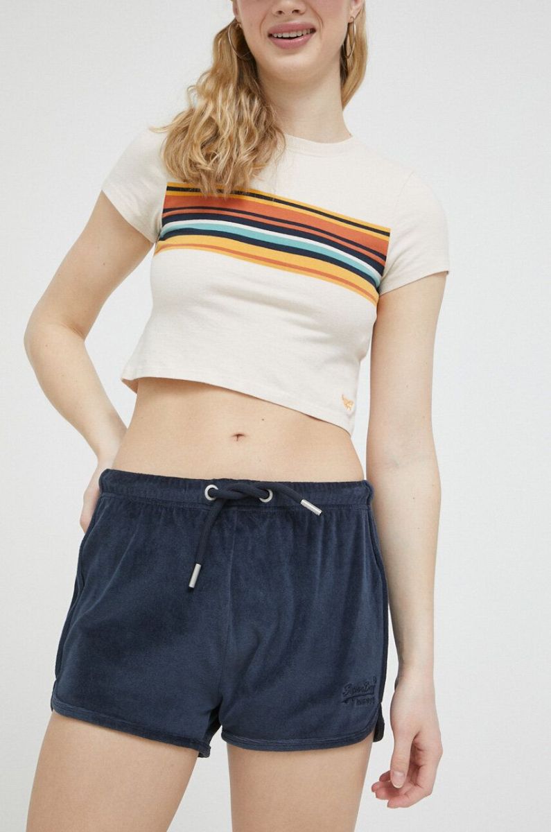 Шорти Superdry жіночі колір синій однотонні висока посадка
