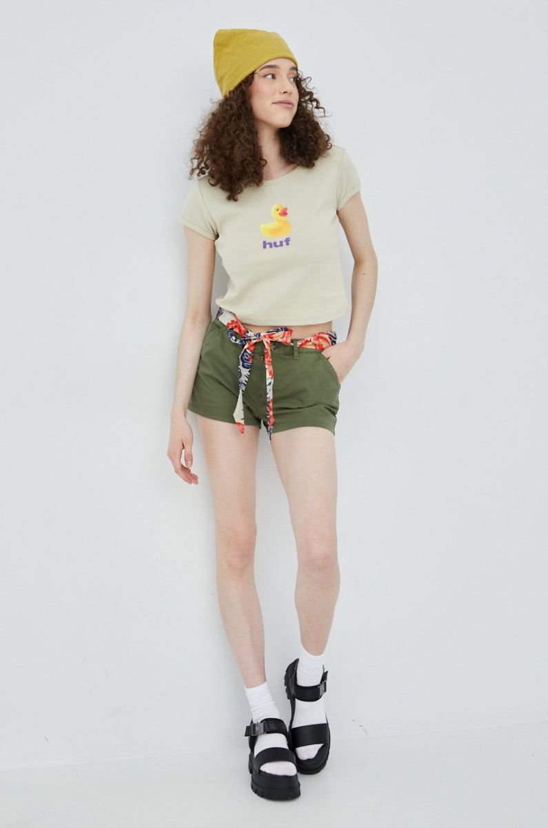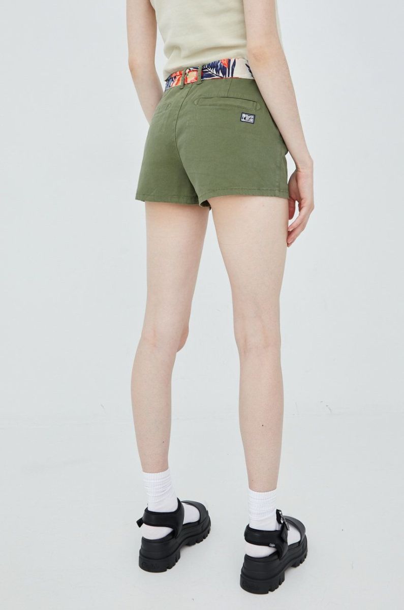 Шорти Superdry жіночі колір зелений однотонні середня посадка
