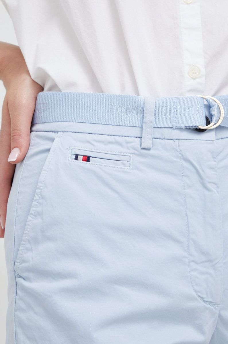 Шорти Tommy Hilfiger жіночі однотонні висока посадка колір блакитний (2478406)