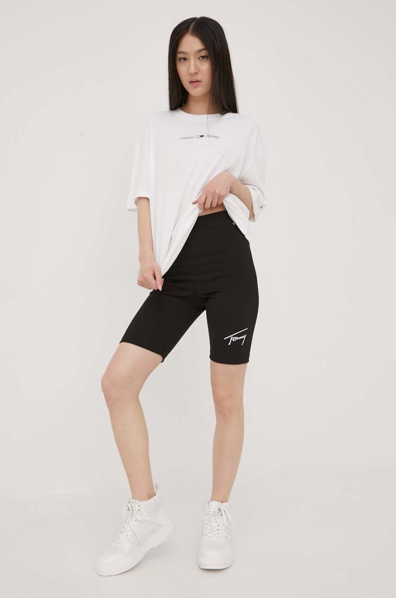 Шорти Tommy Jeans жіночі колір чорний з аплікацією висока посадка