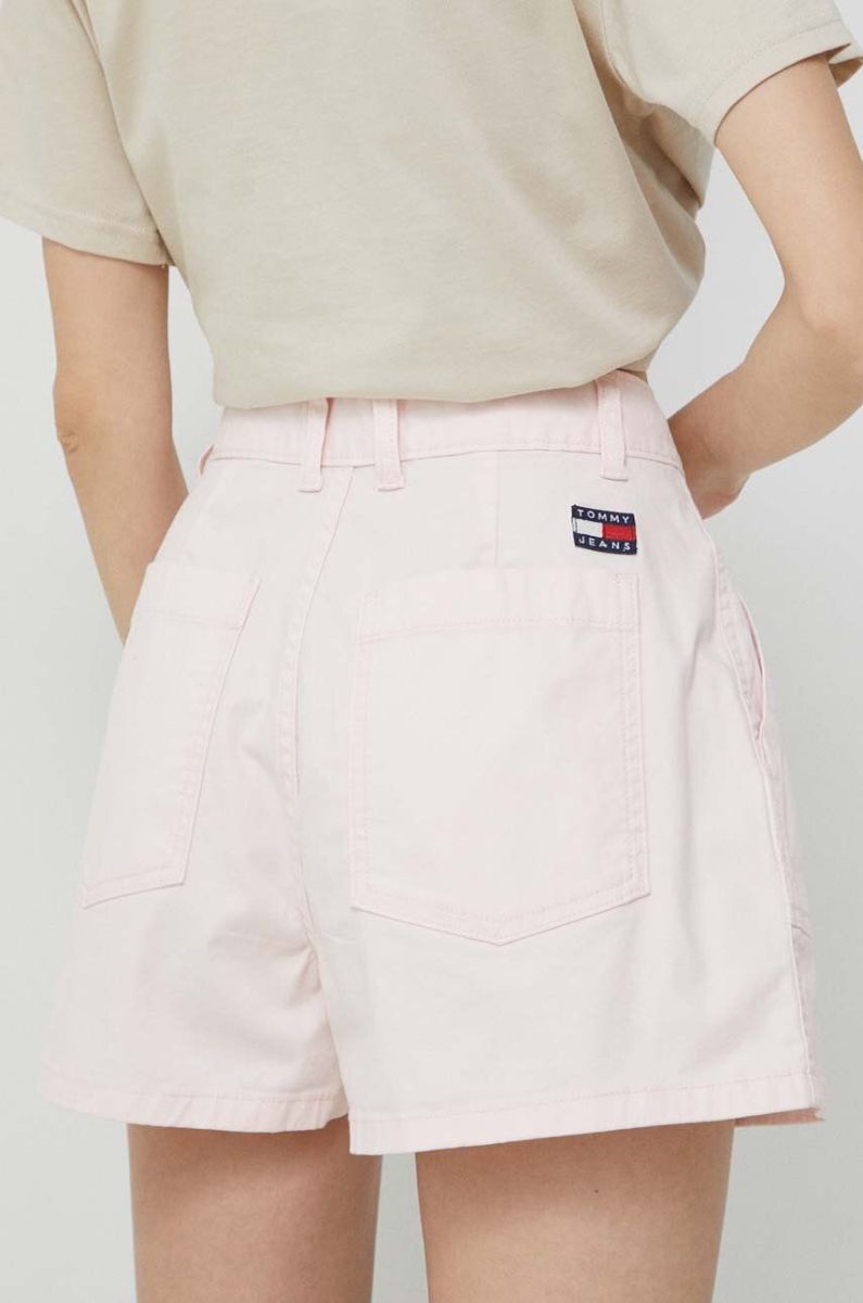 Шорти Tommy Jeans жіночі колір рожевий однотонні висока посадка (3015412)